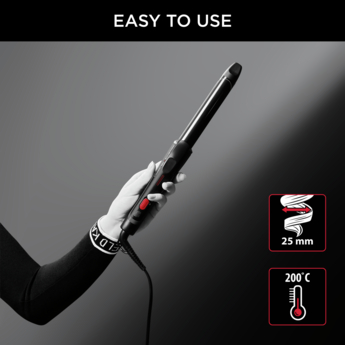 Rowenta x KARL LAGERFELD 25mm uvijač za kosu stvara savršene lokne, glamurozne i sjajne. Ekskluzivna Keratin & Glow obloga ojačava kosu i dodaje sjaj dok na prirodan način smanjuje statički elektricitet, za izvrsne lokne ili talase koji